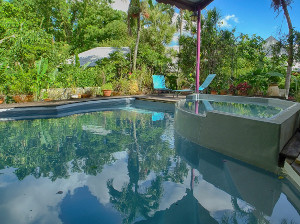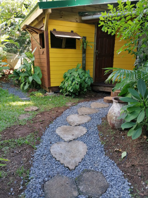Le jardin est un espace clos de 2000 m2 à la végétation tropicale très dense. Il n'est que pour les yeux! Il n'est pas autorisé de cueillir des fleurs, fruits ou feuilles. Ceci s'applique aussi à la forêt avoisinante.